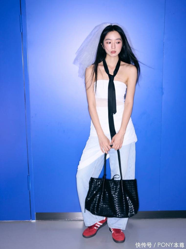 偶尔也会展现自己的小性感,比如白色抹胸搭配牛仔裤和红色德训鞋,外形靓丽,看起来也很颇有时尚博主的感觉!