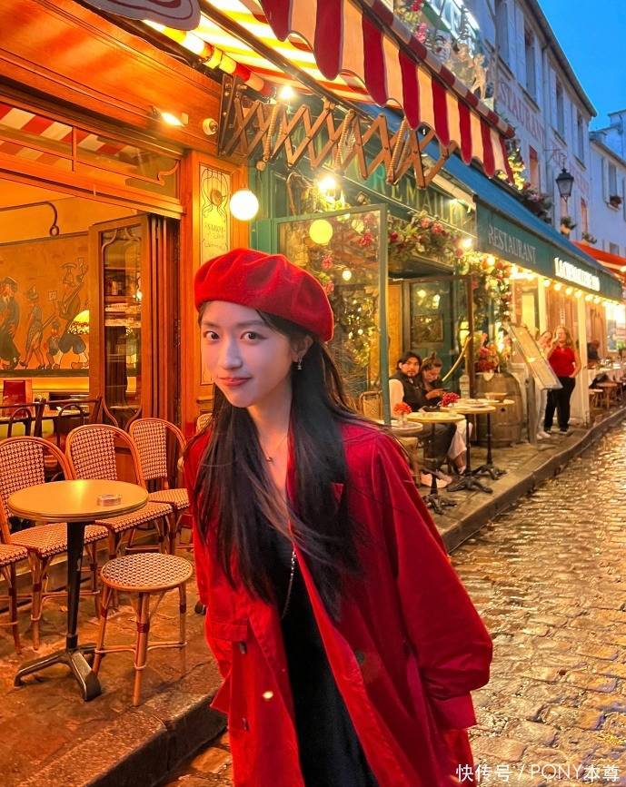 日常美照,也很有网感,比如红色风衣搭配红色贝雷帽,看起来乖巧可人!